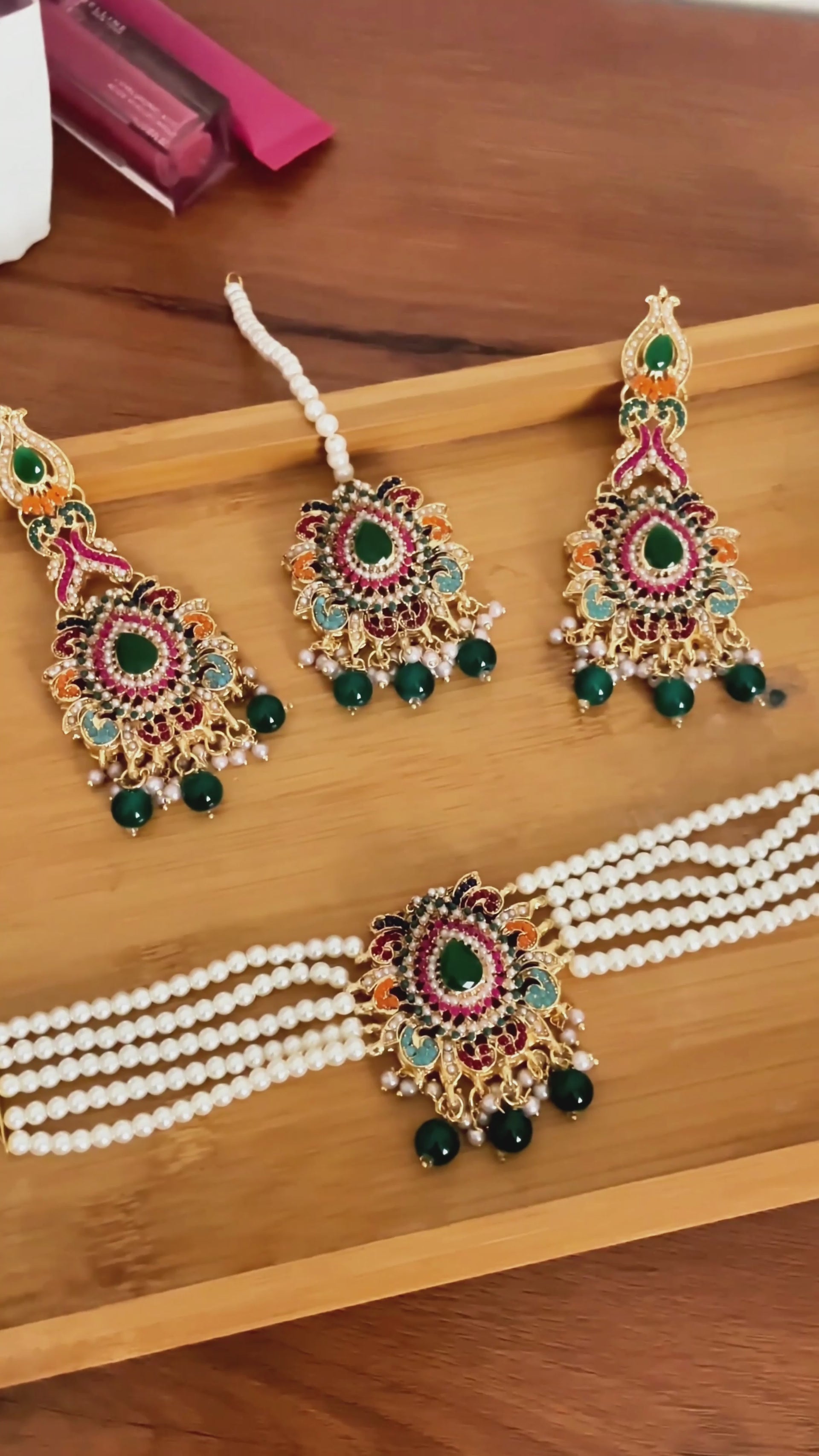 In the Box: 1 Choker, 1 Pair of Earrings, 1 Maang Tikka