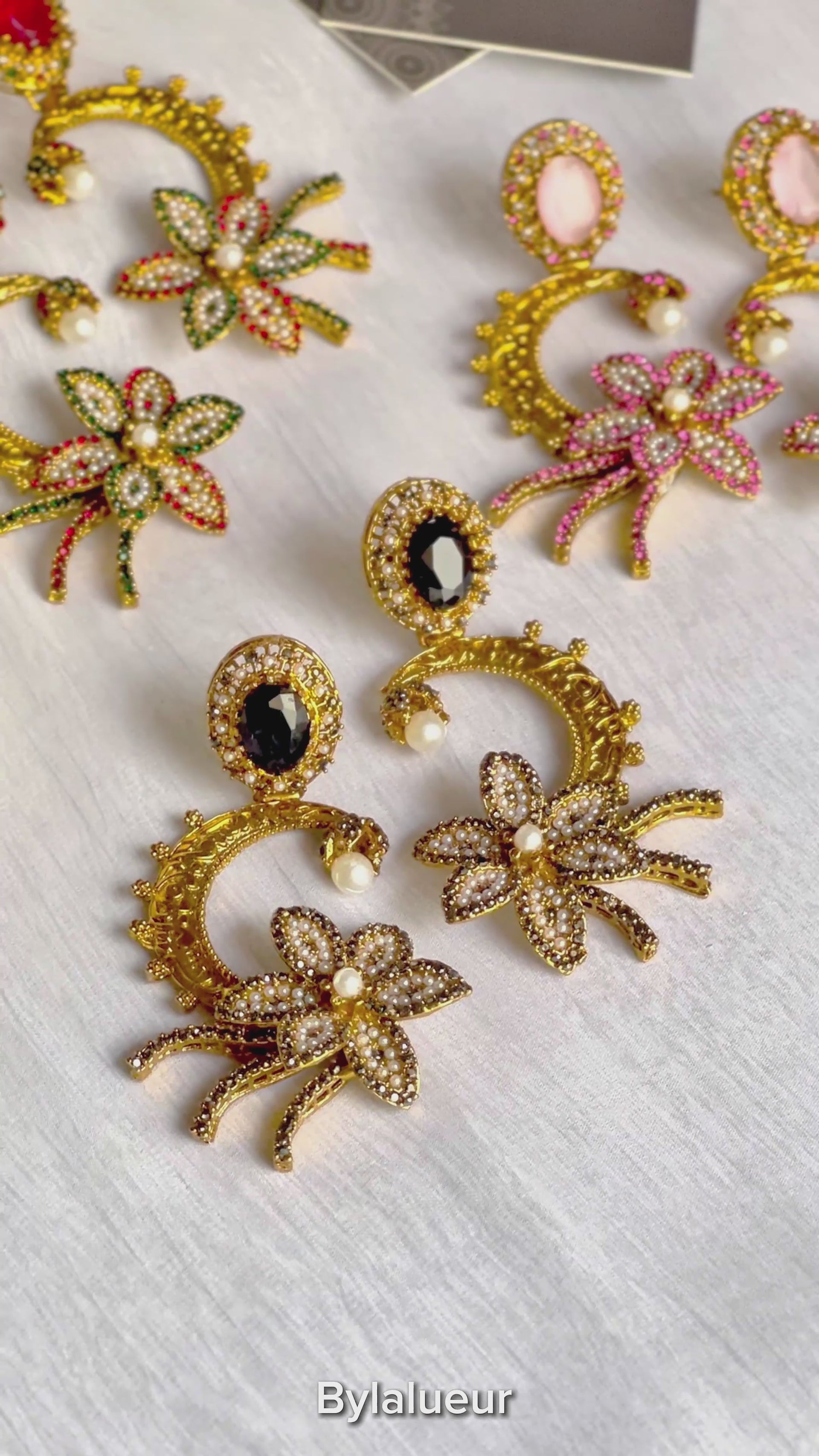 Inspired by the celestial dance of the crescent moon and the tender unfurling of a night-blooming flower, the Mahgul earrings carry the mystique of a starlit garden. They evoke a profound sense of regal femininity, a quiet strength that blossoms with artistic grace. Each piece tells a story of heritage intertwined with dreams, a luminous ode to timeless allure.